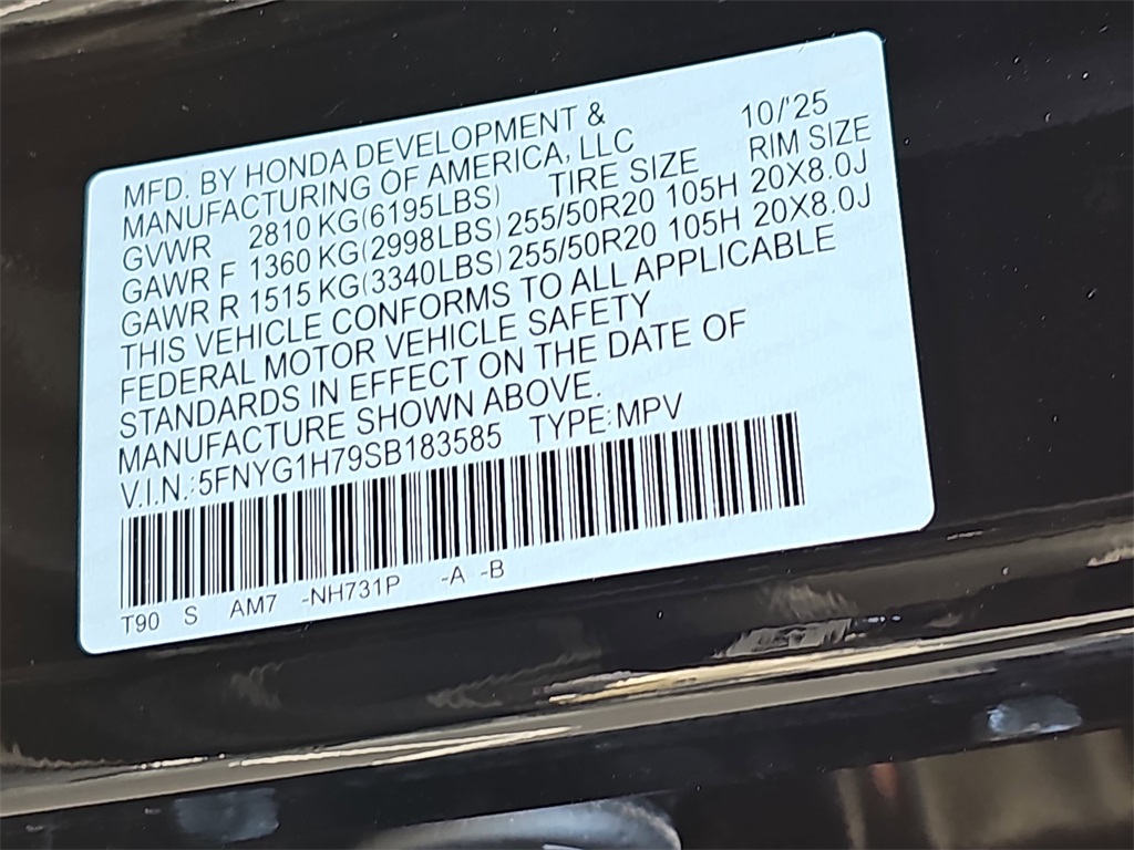VIN 5FNYG1H79SB183585