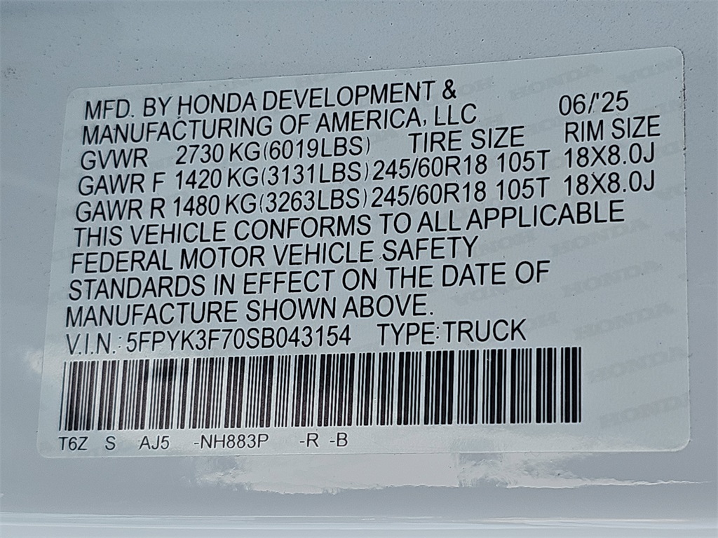 VIN 5FPYK3F70SB043154