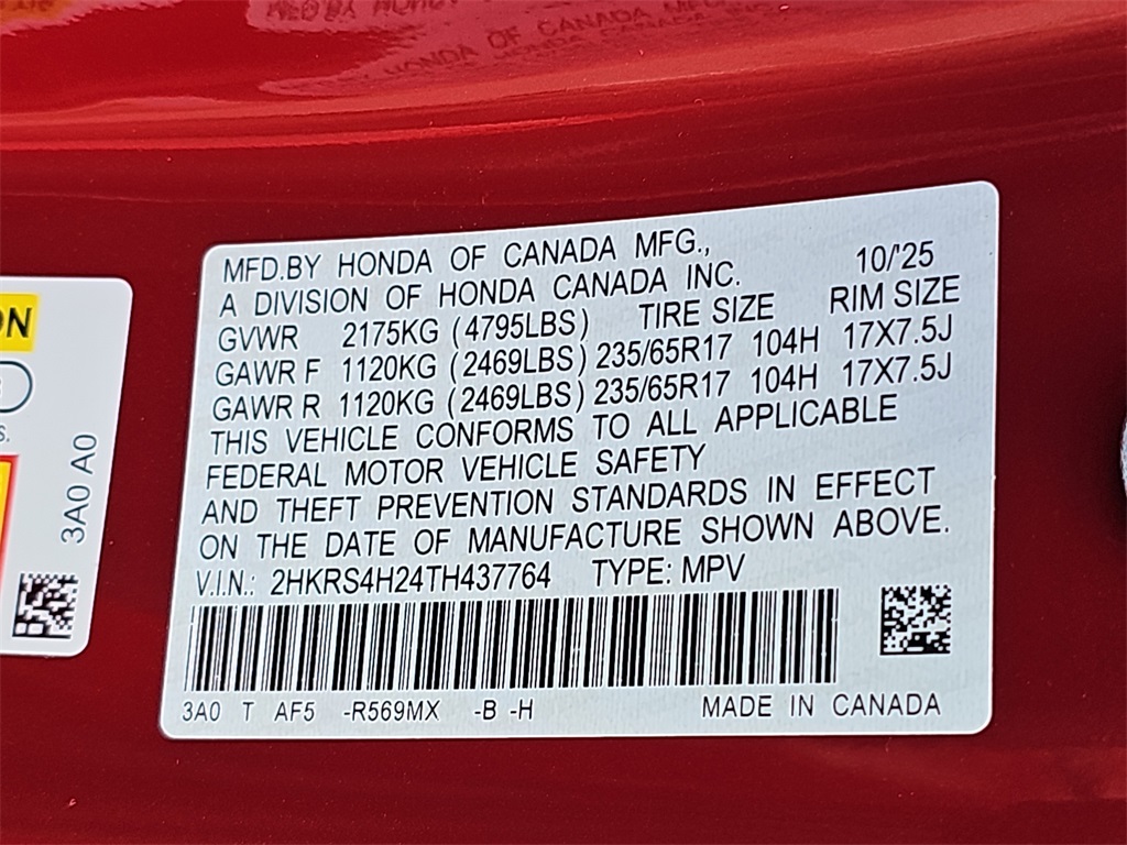 VIN 2HKRS4H24TH437764