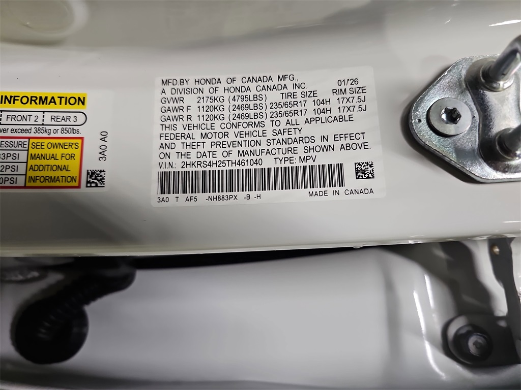 VIN 2HKRS4H25TH461040