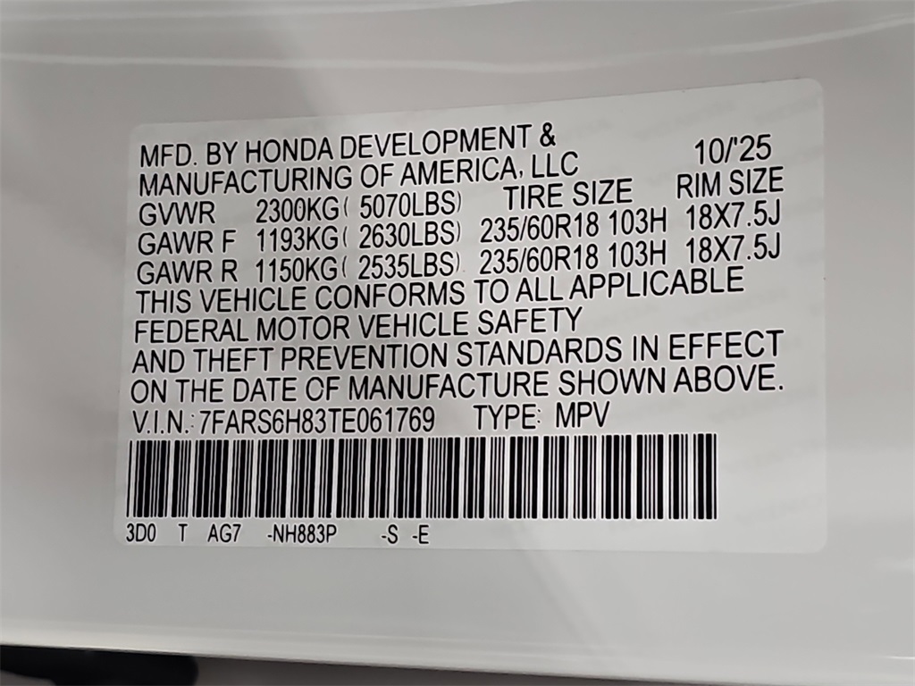 VIN 7FARS6H83TE061769