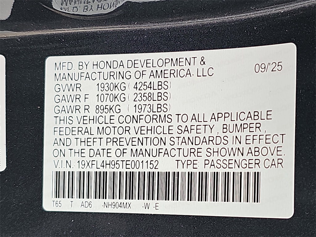 VIN 19XFL4H95TE001152