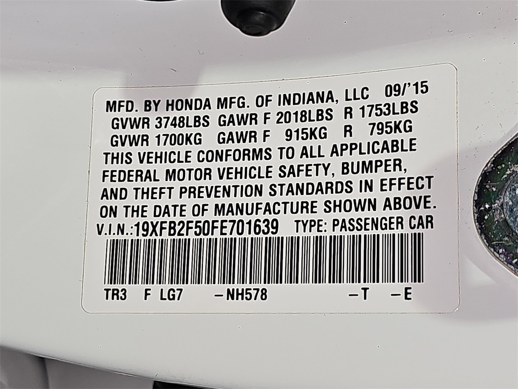 Taffeta White 2015 Honda Civic LX FWD CVT 1.8L I4 SOHC 16V i-VTEC